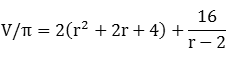 r h r2 2rh V/π=S/π 3 6 9 36 54 4 4 16 32 64 6 3 36 36 108 10 5/2 100 50 250 18 9/4 324 81 729