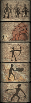 Note that a single figure holding a bow is lit in Row 3 of the Wall painting