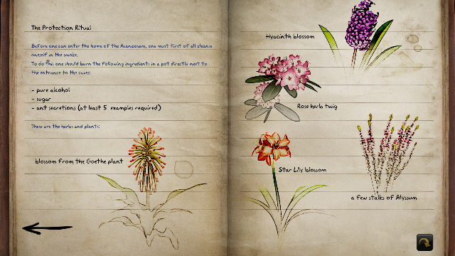 Following the recipe in the diary, put the Clay bowl filled with syrup into the Pot at left