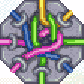 Back in the room, move R F3 R and click on the Alchemy Machine crate. Move F and click twice on the light-colored octagon to access the Alchemy Machine puzzle. Solving this puzzle provides access to a pot or lid.![]()