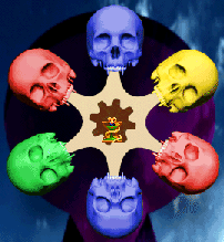 If not, you'll need to return to other room(s) to verify the dials have been selected correctly. Spin the six-skull dial to open the door into a bare room lined with stone bricks. If you've successfully chopped off a head, the circular eye disk ahead will be colored red and you can click on it to take a slide back to the Main Entry Hall.![]()