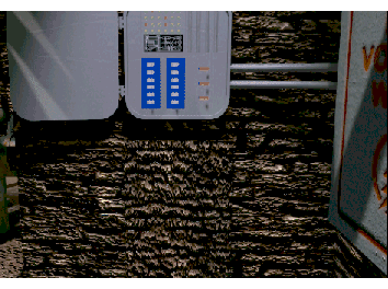Once inside the theatre, climb onto the left side of the stage and proceed through a hallway to the first corner. Here there is a pointed wooden door with a word wheel puzzle on it that provides access to the clock tower, as shown on the Main Floor Map. Continue down the hallway to the next corner. Turn right and note an access hatch that can be opened with the blue button at upper left. This provides a one-way path into Corridor 1 behind the library. Continue around the corner and climb the stairs into the projection room. At left is a stack of film canisters where the Metal Ixupi sometimes lurks. Move towards the far corner of the room where the projector stands. Click a few times on the upper reel to rewind the film and make the button at lower left turn green. Press the green button to watch the movie. Professor Windlenot, sounding like David Attenborough, is dressed like the corpse seen earlier on the shore of the underground lake, so that must have been him. Playing the movie opens the curtain on the right side of the stage and allows a pot/lid behind the podium to become accessible.
