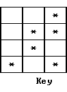 It may take a dozen or more puzzle resets to obtain this configuration. To solve it, position one token in each of the two inner columns in one of the locations above indicated with asterisks. Position the other two tokens in the outer columns in any row. Then use the column arrows as many times as needed to move the tokens into their final positions along the rising diagonal.![]()