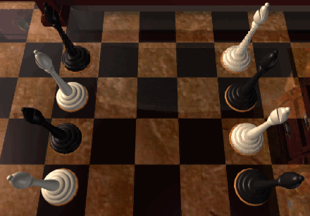 This is the first of several chess puzzles encountered in the game. The objective here is to exchange the positions of the four white and four black bishop chess pieces, while never moving a piece onto a square controlled by the opposing team. You will be making all the moves for both teams, and it's not necessary to alternate between white and black.![]()