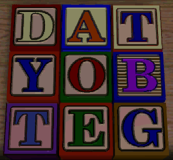 If you need a hint for this puzzle, you can access the Library through the toy chest on the opposite side of the room after watching an animation of a snarling dog. This is not a crossword or word square puzzle since only the three words in the horizontal rows need to be rearranged, in this case reversed left to right and top to bottom to spell out another reference to The 7th Guest:![]()