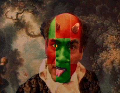 After the puzzle has been solved and a cutscene plays, you can click the chattering teeth icon on the trunk for an optional skeleton animation. Move F L past a cutscene in the mirror to the final confrontation with Stauf in the Room at the Top. Watch the endgame sequence, in which the boy playing Tad seems to be laughing at the absurd lines he's been given. If desired, press [Esc] to skip the credits (but some of them are kinda funny).![]()