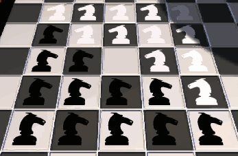 B I R K H S V MFour of the white knights in the rightmost column (E, J, O and T) are not moved at all in this solution.X Q F C N W P G D M