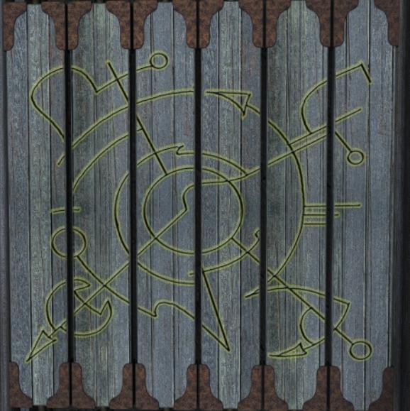 Save your game at this point. Note the symbols on the wall here, showing the juxtaposition of symbol pairs. Each symbol is faintly reminiscent of a letter or number. From left to right, they are: