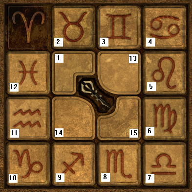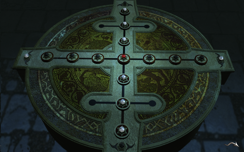 From the initial position with Greek and Hebrew letters overhead, go right to a