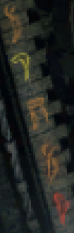 - Stone slab for right doorObserving the faint red symbols on the remaining slabs, we have the following situation: