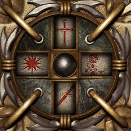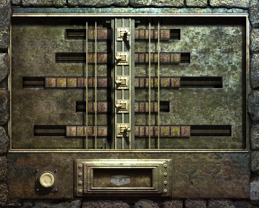 1. Press the lower-left circular button to start the puzzle. A ball appears and cycles endlessly between the outer and next-to-outer rings.Exit through the Wall mirror2. Position the red cursor over the T-shaped pushbutton at upper left. When the ball is in the uppermost of the two rings, press the pushbutton.