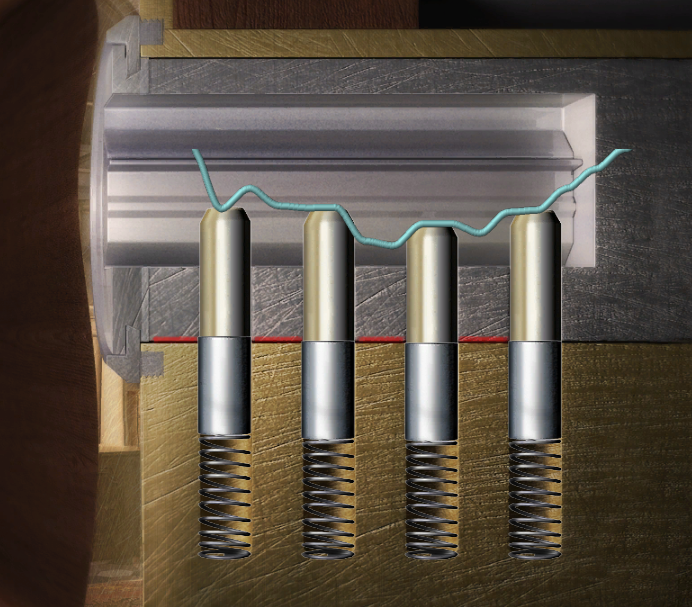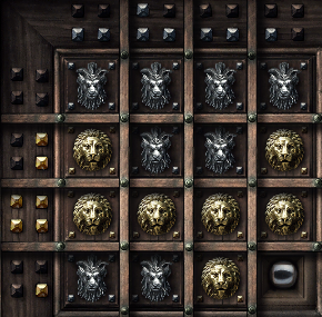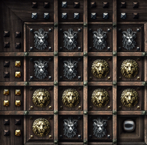 The number of gold and silver pips on the left and upper sides of the puzzle grid indicate the number of lions and goats, respectively, in each row and column of the desired solution. The lower-right cell of the grid is left open in the solution and a metal ball appears there once the slider is solved. There are two possible solutions meeting these requirements:![]()