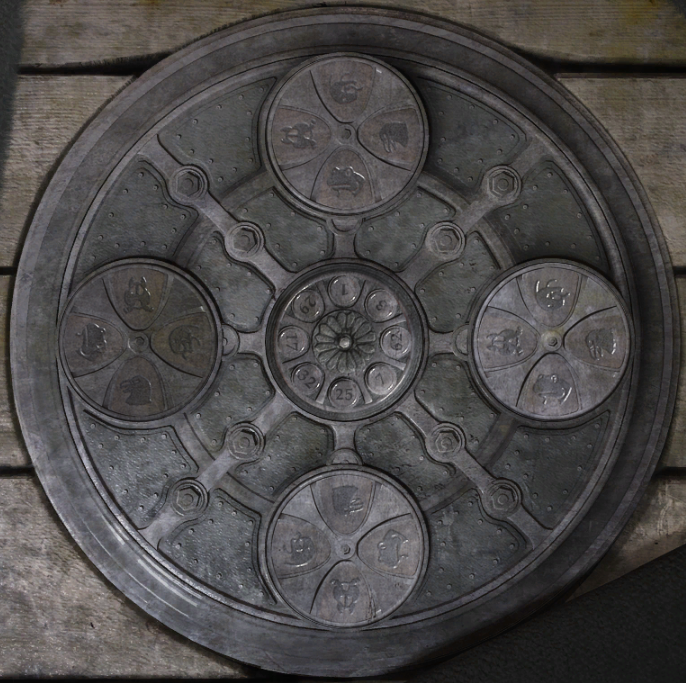 Paver slab Status #1 Disabled by staff #2 Opens left door #3 Symbol #4 Disabled by staff #5 Symbol #6 Opens right door #7 Symbol #8 Disabled by staff (Symbols shown in negative for clarity)