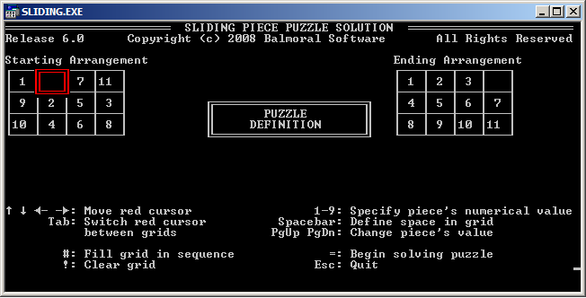 The easiest way to solve this puzzle is to identify the jumbled pieces using the numbering above, and then use Balmoral Software's solver to find the moves required. For example, the jumbled arrangement![]()