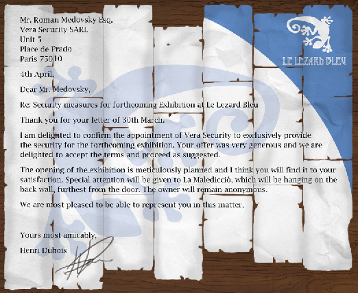 - Blood StainNow back to playing as George, examine the Waste Basket to the left of the desk to get Henri's home address