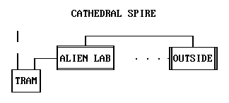 Referring to the Cathedral Spire map, enter the alien lab and zoom in on the console at the bottom