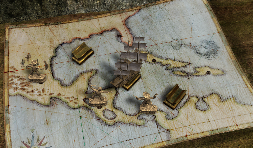 Using the Enigma's reference to hook, pegleg, dagger and pistol, hit the following sequence of squares on the 6 x 4 grid where the shadows are cast: