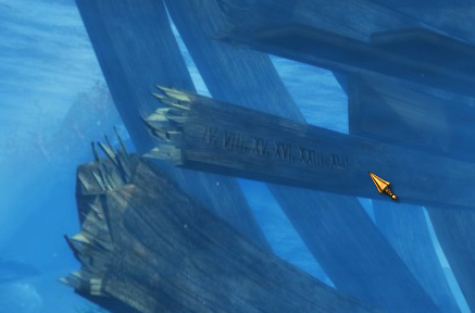 Use the Knife on the wooden block attached to the spar lying on the beach