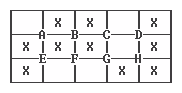 This is a "rotational slider" puzzle as seen in other contemporary games such as Safecracker. Any of the eight groups of 2 x 2 squares can be rotated clockwise by pressing the red button at the center of the group. Those buttons are indicated by the letters A - H in the diagram above. Warning: Under Windows, the Alt-Tab keystroke resets the puzzle to its initial state (as does moving to any other position in the cave). A 20-step solution is:![]()