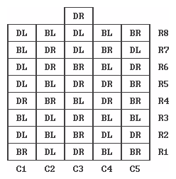 (R4,C3) (R5,C3) (R5,C2) (R6,C2) (R7,C1) (R7,C2) (R8,C2)Path 2: (R1,C4) (R2,C5) (R3,C4) (R3,C3)