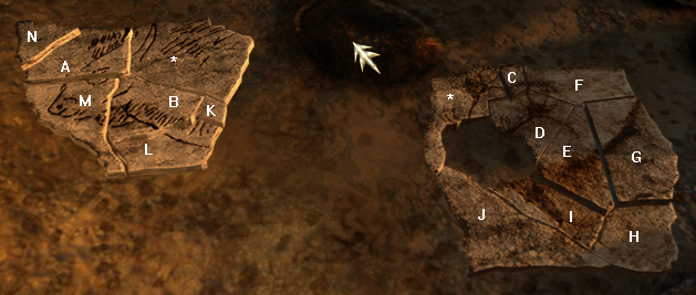 The following diagram identifies the tablet pieces to be placed in alphabetical order (the two pieces marked with an asterisk are stationary):