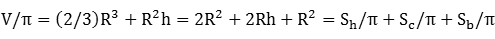 V/π = (2/3)R3 + R2h [1]