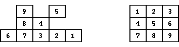 which can be obtained by moving the numbered pieces at left into the corresponding positions at right:![]()
