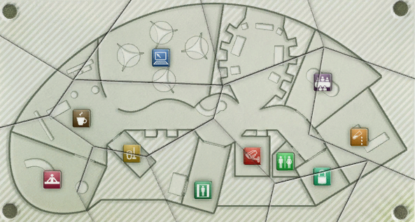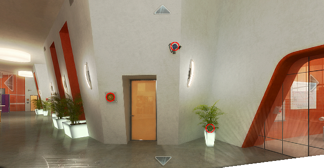 When completed, the office map is accessible using the Map button at the bottom of the screen. This map also shows the active surveillance cameras.![]()