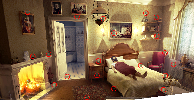Move the Blood sample to the microscope. Move the viewpoint around and click on the red and white cells until 30 are found. Return to the Dining/Living room. Rotate right and open the stained-glass doors in the bookcase.![]()