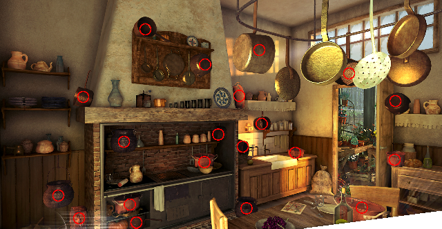 Go back to the Dining/Living room and enter the Kitchen beyond. Solve the HOG for 20 deep containers:![]()