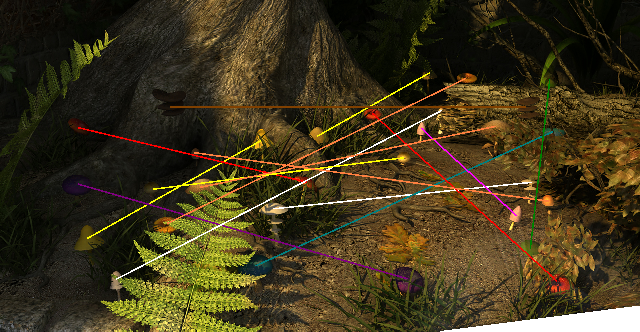 From the last viewpoint above, zoom in on the base of the twisted tree trunk. Remove 15 matching pairs of mushrooms: