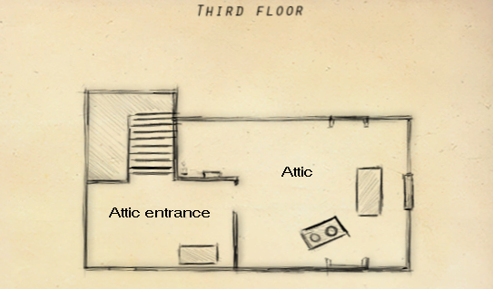 Return to the Attic entrance and zoom in on the door. Pick the key with the zodiac symbol matching the triplicity of the corresponding door lock: