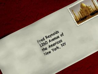 Fred is asleep on board a plane to New Delhi, dreaming about the Taj Majal, as indicated by the cloudy border around the screen![]()