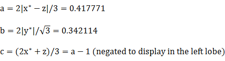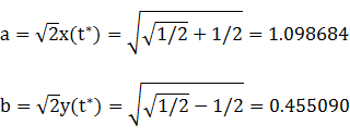 contained within the lobe, so we require that has a zero at t* = 0.916671. The corresponding coordinates are![]()
