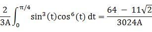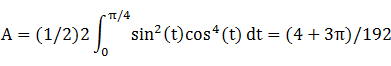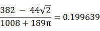 Region Area Centroid ordinate Product Triangle 1/16 1/6 1/96 Remainder A = (4 + 3π)/192 Total (16 + 3π)/192