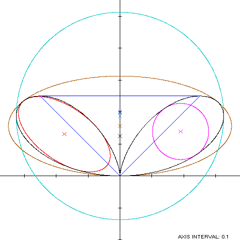 a = 0.165788To display the tilted ellipse in the left lobe for comparison with the incircle, we negate c and then rotate the ellipse clockwise by