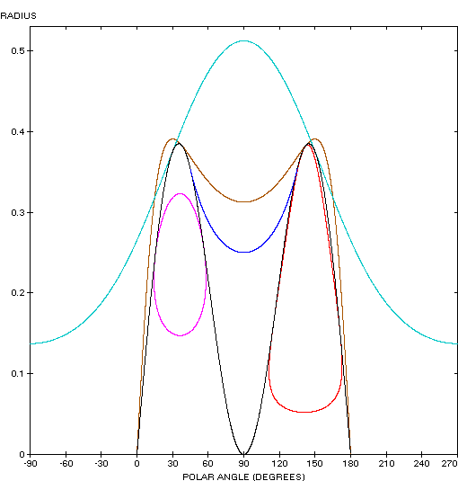 x(t) = r(t)cos(t - tR)The asymmetry can then be seen by comparing the upper half of the lobe (red) with a reflection of the lower half (blue):y(t) = r(t)sin(t - tR)