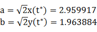 t* = 0.984995,so the inellipse dimensions are