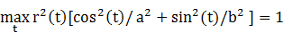 x(t)y(t) = r2(t)cos(t)sin(t) = |cos(t)|sin(2t)/2This expression is maximized in the first quadrant at