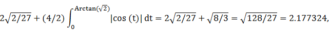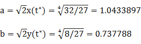 d/dt [x(t) - z]y(t) = d/dt |cos(t)|sin(2t)/2We established in the preceding Circumellipse section that this expression has a zero in the first quadrant at