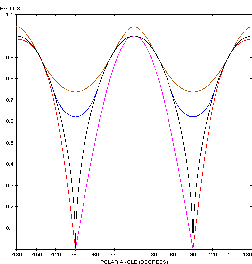 This bisymmetric curve is traced out in a counterclockwise direction around the origin, starting from the right edge at (1,0). Its maximum height occurs at the points![]()