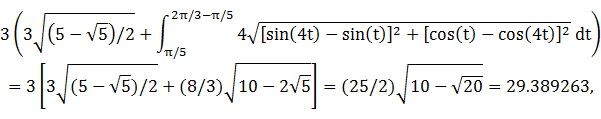 x'(t) = 4[sin(4t) - sin(t)]so by (L1), the perimeter of S isy'(t) = 4[cos(t) - cos(4t)],
