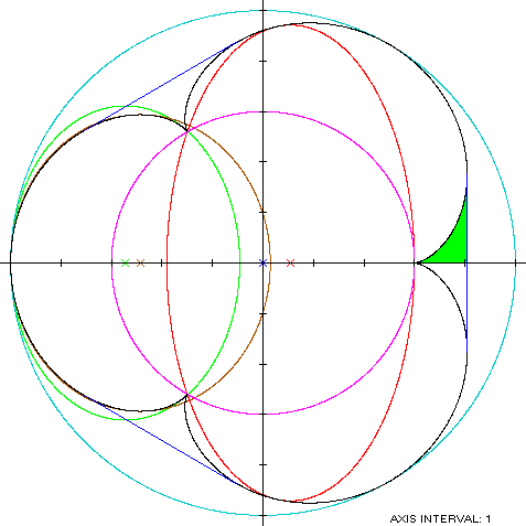 b =17.335157 23.755802 (-2.427051,0) Incircle R = 3 18.849556 28.274334 Inellipse a = 2.453277