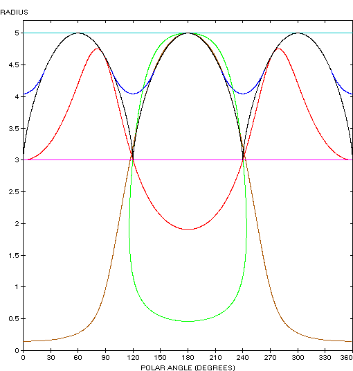 x2(t) + y2(t) = 17 - 8cos(3t)ranges from 9 to 25, so its inradius is 3 and its circumradius is 5.