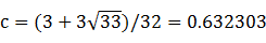 The largest circle centered on the x-axis and inscribed in the lobe has radius R and center abscissa c. The circle must be contained within the lobe, so we require that![]()