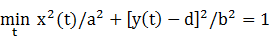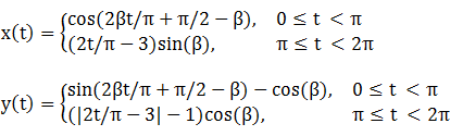 x(φ) = cos(φ)where the angle φ is measured from the center of the circle and ranges fromy(φ) = sin(φ) - cos(β),