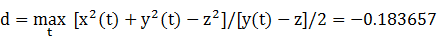 d = h/2 - w2/(8h) = cos(2β)sec(β)/2 = -0.208765R = h - d = sec(β)/2 = 0.610387