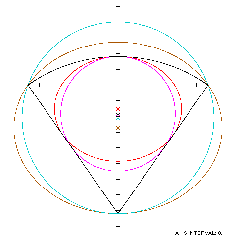 b =3.805114 1.136275 (0,-0.273051) Circumcircle R = sec(β)/2 3.835177 1.170472 (0,-0.208765)