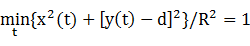 d/dt x(t)[y(t) - z] = d/dt cos(2βt/π + π/2 - β)[sin(2βt/π + π/2 - β) - cos(β)]has a zero over [0,π) at t* = 0.682719. The corresponding coordinates are