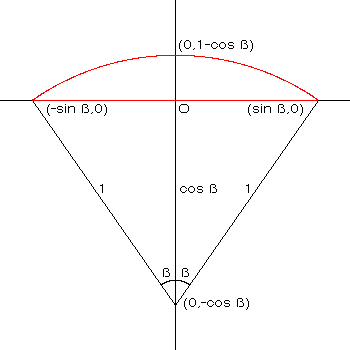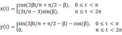 x(φ) = cos(φ)where the angle φ is measured from the center of the circle and ranges fromy(φ) = sin(φ) - cos(β),